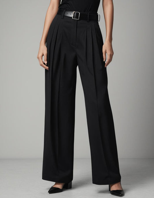 WOMEN'S DOUBLE PLEATED LOOSE BLACK TROUSER